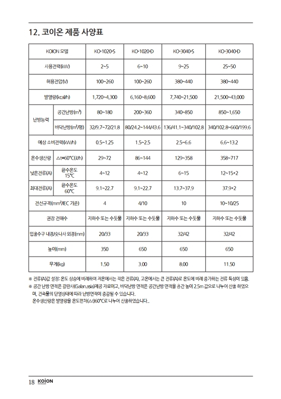 o ³­¹æ´É·Â: °ø°£³­¹æ 80~180§©, ¹Ù´Ú³­¹æ 32§³(9.7Æò)~72§³(21.8Æò)